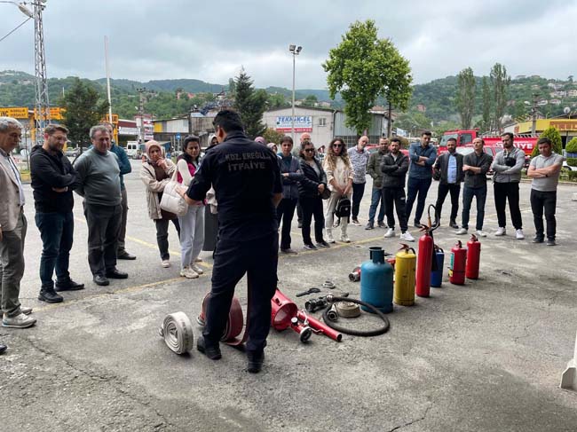 Demirören; “Kdz. Ereğli Belediyesi İtfaiye Müdürlüğü ekipleri tarafından, İlçe Milli Eğitim Müdürlüğü’ne bağlı okullarda yangın söndürme ekiplerinde görevli 30 personele bilgi ve beceri kazandırmak adına ‘Yangın Eğitimi Kursu’ verilmiştir. İki gün süren eğitimin birinci gününde Öğretmenevi’nde teorik olarak anlatılan konular ikinci gün Kışla Merkez İtfaiye’de pratik olarak işlendi. Eğitim sonucu öğretmenlere eğitimle ilgili kazanımlarını ölçmek adına sınav yapıldı. 3 hafta sürecek eğitimler sonunda 100 öğretmenimiz Yangın Eğitimi almış olacak” dedi.