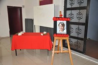Öte yandan konferans salonunun girişinde kırmızı karanfiller