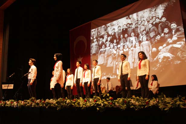 yapan başta müzik öğretmenleri olmak üzere çeşitli branşlardan öğretmenler seslendirme yaptı, enstruman çaldı, şiir okudu.