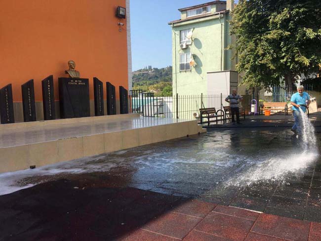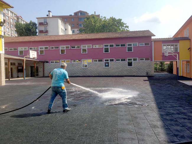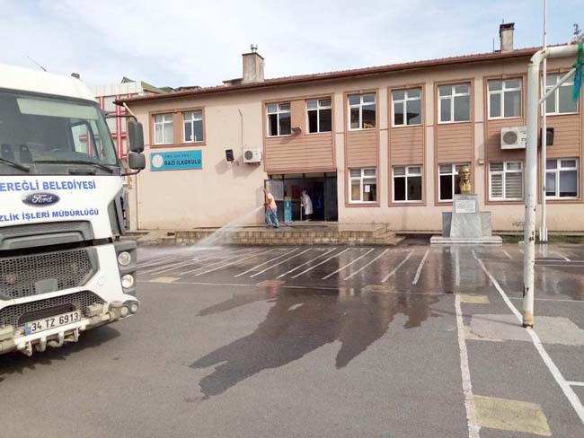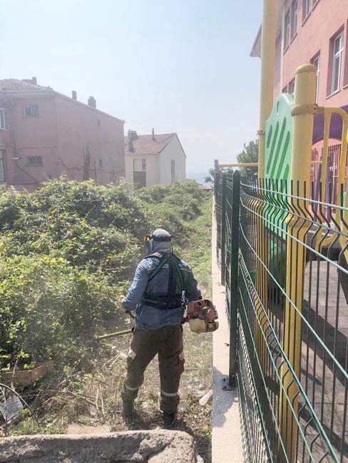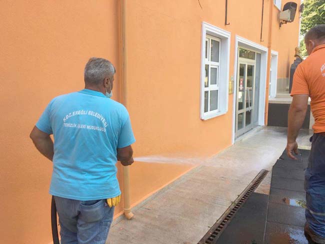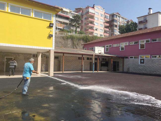 Kdz. Ereğli Belediyesi Temizlik İşleri Müdürlüğü ekiplerince kent genelinde okulların bahçeleri yıkanıyor, çevresinde tırpan işleri yapılıyor.