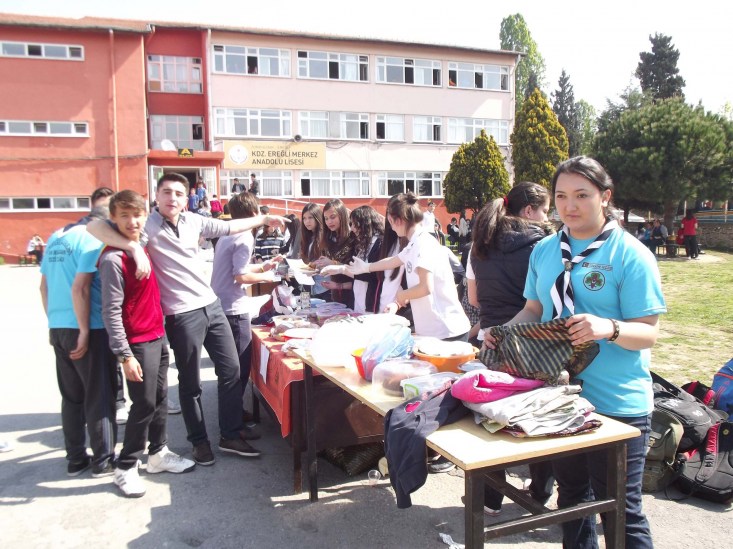 Karadeniz Ereğli'de eğitim öğretim yapan Karadeniz Ereğli Lisesi öğrencileri okullarının ihtiyaçlarını karşılamak için kermes düzenledi.