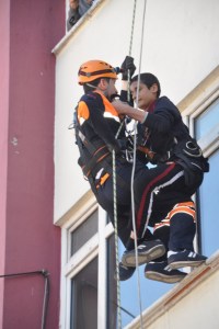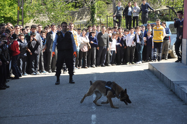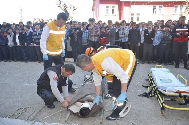 Düzenlenen tatbikatta senaryo gereği, alarmın çalmasıyla birlikte öğrenciler binayı boşalttı. İl Afet ve Acil Durum Müdürlüğü (AFAD) ekipleri, 3 katlı okulun ikinci katında mahsur kalan bir öğrenciyi sedye ile pencereden halat yardımıyla aşağıya indirdi. Daha sonra bir AFAD Görevlisi okulun yanında bulunan bir yere saklanarak üzerine battaniye örttü. AFAD'ın asker gibi eğitilen arama ve iz sürme köpeği Afet saklanmış olan görevliyi buldu. Tatbikatın son bölümünde Afet isimli iz sürme köpeği, öğrencilere küçük bir gösteri de yaptı. Komutlarla AFAD görevlisinin üzerinden atlayıp, topla oynayan Afet'i öğrenciler ilgiyle izledi.