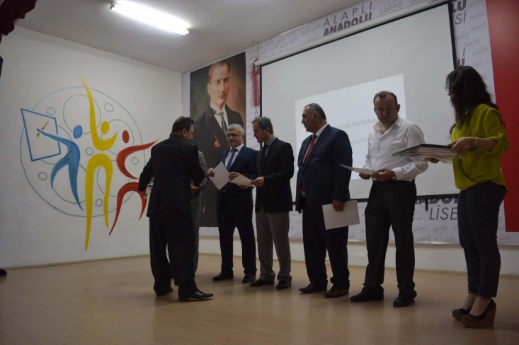 Alaplı Anadolu Lisesi salonunda yapılan sertifika töreninde