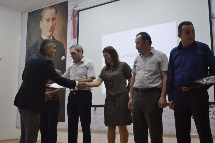 Başkanı Nuri Tekin, Daire ve Okul Müdürleri ve öğretmenler katıldı.