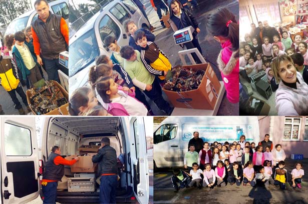 Öte yandan belediye ekipleri, İzmirlioğlu İlkokulu'ndan 238,1 kilo, İmam Hatip Lisesi'nden de 180 kilo-atık alırken, öğrenciler ve öğretmenleri müdürlük personeliyle hatıra fotoğrafları çekti.