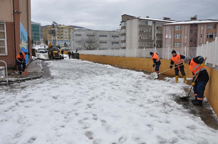 Karadeniz Ereğli'de hafta ortasında başlayan yoğun kar yağışına karşı aralıksız mücadele Karadeniz Ereğli Belediyesi, kar yağışı nedeniyle 3 gün tatil edilen okullar içinde harekete geçti.