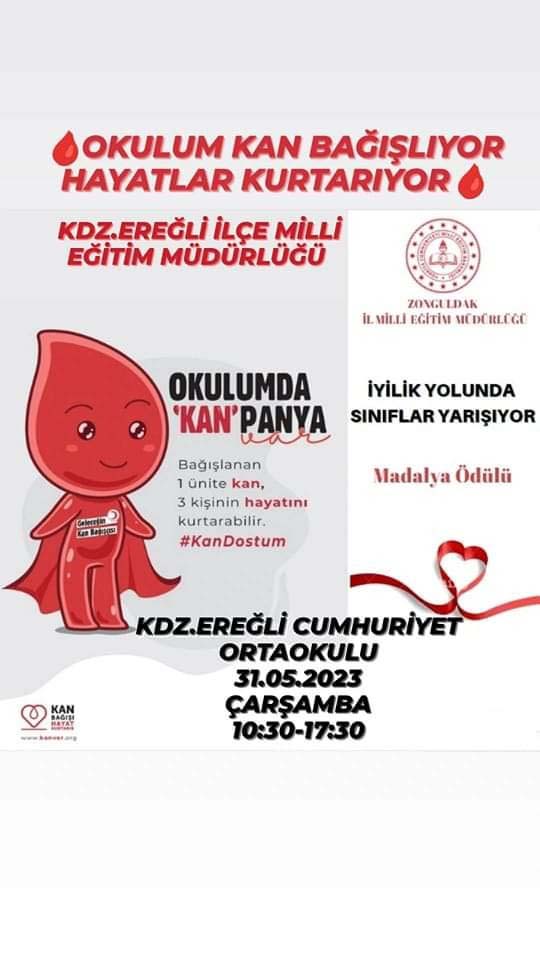 Karadeniz Ereğli İlçe Milli Eğitim Müdürlüğü nezaretinde gerçekleştirilecek “Okulumda Kan’panya Var” sloganı ile okulda gerçekleştirilecek kampanyanın 10.30 - 17.30 saatleri arasında yapılacağı kaydedildi.