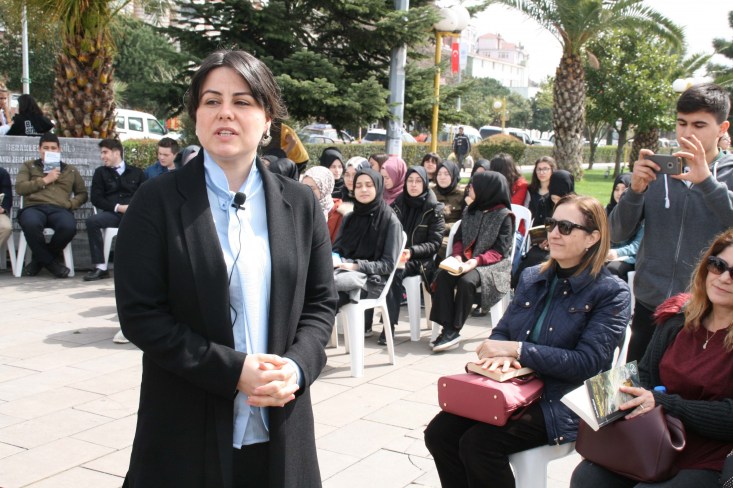 "54. Kütüphaneler haftası'nın teması, 'Yeni Nesil Çocuklar, Yeni Nesil Kütüphaneler.' Bu kapsamda bugün burada ve tüm Türkiye'de aynı anda yarım saat sessiz kitap okuyarak , kitap, kütüphane ve okuma kültürü konularında toplumsal algıyı yükseltmeyi hedefliyoruz. Altı yıldır başarıyla gerçekleştirdiğimiz 81 İlde Okuyoruz etkinliğinin bu yıl yedincisini gerçekleştiriyoruz. Hepinize etkinliğimize katıldığınız için teşekkür ediyoruz" dedi.