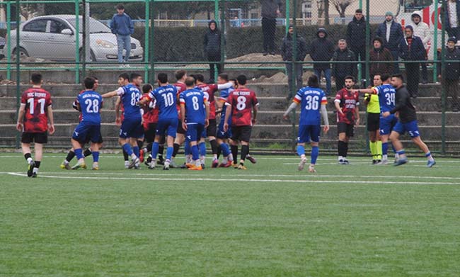 Zonguldak Deplasmanlı Süper Amatör Lig’in 15. haftasında Filyos Sefercikspor-Gelikspor karşılaşmasında 3 futbolcu ile 1 yöneticiye kırmızı kart çıkınca yeşil sahada olaylar çıktı.