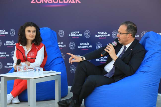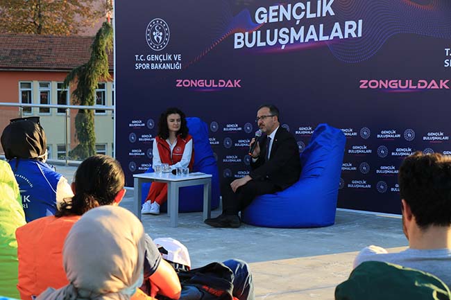 Gençlik buluşmasında gençlerle bir araya gelen Bakan Kasapoğlu, "Gençlik Merkezleri, Türkiye'deki çok özgün projelerden biri. Bu projenin olmazsa olmazı siz değerli gençlere çok teşekkür ederim. Dedik ki gençler, tüm halk tüm projelerden dolu dolu faydalanmalı. Halkımız olsun, spor alanları, havuzu, kortu olsun. Halk tarafından ve dolu bir şekilde faydalanılması lazım. Her zaman gündeme getiriyorum. Zonguldak'ta bu gençlik merkezinde ve diğer tesislerde halkımızın tesislere erişimi, tesislerle ilgili bilinci hakikaten çok yüksek. Biz de bu uğurda spor altyapısını çeşitlendirmede daha büyütme çalışmalarımıza bir yandan sürdüreceğiz. Bir yandan da sizlerin katılımcı ruhuyla, katılımcı model. Gençlerin sürecin planlanmasından uygulanmasına, denetimine kadar işin içerisinde olması. Bizim en önem verdiğimiz unsurlardan bir tanesi onu da Zonguldak'ta daha da güçlendirme adına çalışacağız" şeklinde konuştu.
