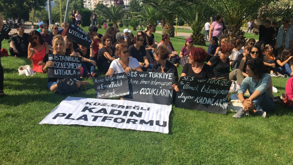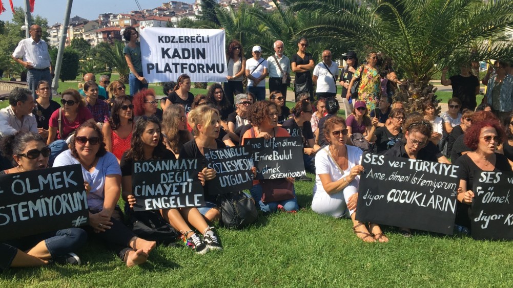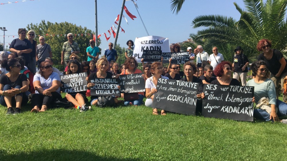 Kırıkkale'de Emine Bulut adlı kadın, 4 yıl önce boşandığı eski eşi Fedai Baran tarafından 10 yaşındaki çocuğunun gözleri önünde bıçaklanarak öldürülmüştü. Ereğli Kadın Platformu tarafından yaşanan cinayet ile ilgili oturma eylemi gerçekleştirdi. Eylem öncesi açıklama da bulunan Ereğli Kadın platformu sözcüsü Şenay İşeri “Kadınlar yasta değil isyanda. Kadınlar yaşamak ve yaşam hakkı için sokakta. Biz iyi hal indirimi istemiyoruz. Emine Bulut Cinayeti bir değil, bir kerelik değil, tesadüf değil. Biz iyi hal indirimi istemiyoruz. Tahrik indirimi istemiyoruz. Ölmek istemiyoruz” dedi.