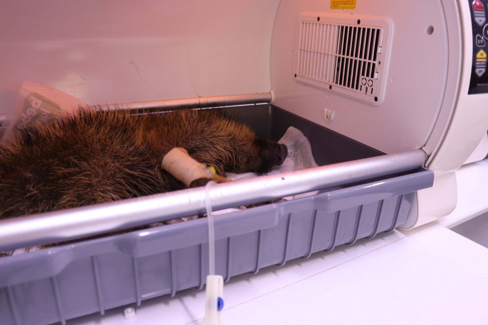 Veteriner Hekim Hüseyin Demircan, yaralı domuzun uzun süre aç kaldığını belirterek, tedavisine başladıklarını söyledi. Demircan, "Sağ olsun İsmet abimiz bizi aradı, dağda domuz bulduğunu söyledi. Hemen bize getirmesini rica ettim. Bizim için kedisi, köpeği, domuzu, kuşu önemli değil. Sağ olsun 5 kilometre boyunca sırtında taşımış. Şu an vücut ısısı yok, çok uzun süreli açlık çekmiş, dehidrasyonu var. Acil yoğun bakıma aldık, serum bağladık. Tabii ki bundan önce yaptığımız ilk şey Milli Parkları aramak, doğa hayvanlarını hemen tedaviye alamıyoruz. Sağ olsun Milli Parklar Müdürümüz acilen siz tedavinizi yapın, biz elimizden geleni yaparız dedi. Herkesin bildiği gibi domuz pek sevilmeyen bir hayvan ama bu bizim için fark etmiyor. O daha bir bebek, şokta, daha ne yaptığını bilmiyor. İnşallah iyi olacak. İsmet Bey gibi kalpten hayvanları seven insanlar olduğu sürece dünya daha güzel bir yer haline gelecek. Doğa hayvanlarını özellikle yolda bulduklarında bize getirmelerini istiyoruz, ücretsiz tedavi ediyoruz. Bu domuzu da ücretsiz tedavi edeceğiz" diye konuştu.