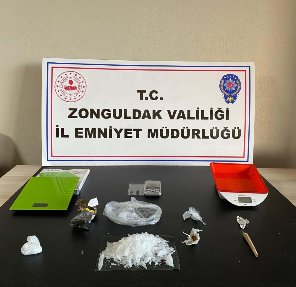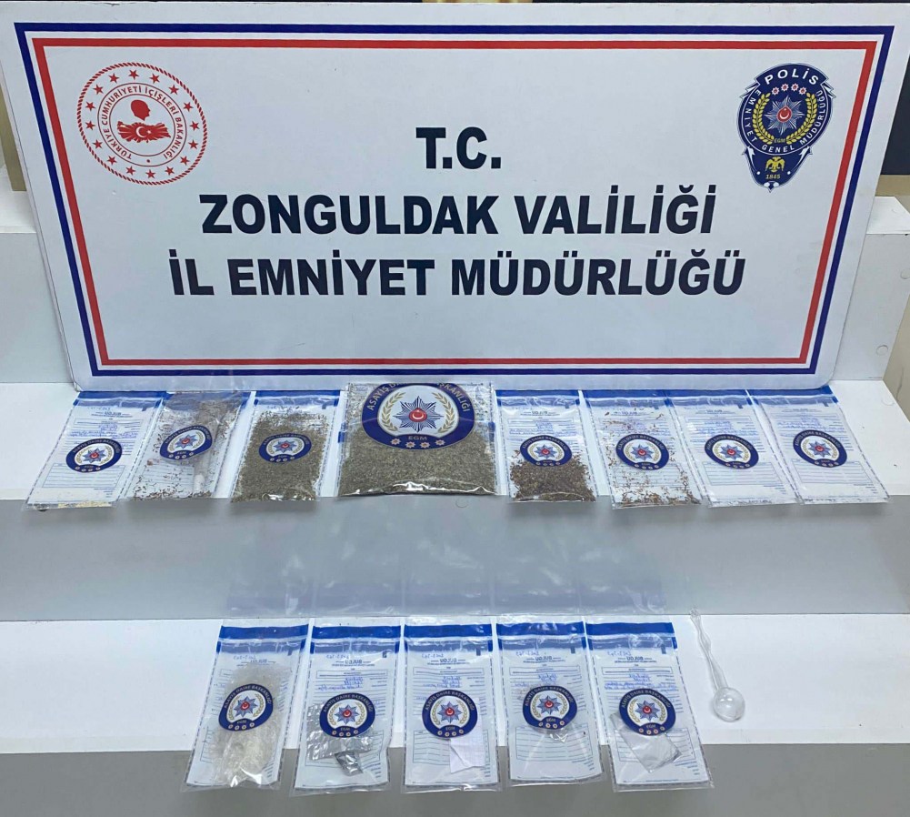 Narkotik Suçlarla Mücadele Şube Müdürlüğü Ekipleri tarafından D.Ş, E.Ç, Ö.Ö, E.C.T, E.B ve Ç.A isimli (6) şüpheli yakalandı. Yapılan operasyonlar neticesinde ölümcül etkiye sahip 218 gram uyuşturucu madde, 3 adet hassas terazi, 1 adet uyuşturucu kullanma aparatı ve uyuşturucu paketlemeye yarayan çeşitli malzemeler ele geçirildi. E.B ve Ç.A isimli şüphelilere Kullanmak için Uyuşturucu veya Uyarıcı Madde Bulundurmak suçundan işlem yapılırken, D.Ş, E.Ç, Ö.Ö ve E.C.T isimli şüphelilere Uyuşturucu veya Uyarıcı Madde Ticareti Yapmak suçundan işlem yapılarak D.Ş isimli şüpheli Zonguldak Cumhuriyet Başsavcılığa, E.Ç, Ö.Ö ve E.C.T isimli şüpheliler ise Kdz. Ereğli Cumhuriyet Başsavcılığına sevk edildi, 23.12.2023 tarihinde mahkeme tarafından D.Ş, E.Ç, Ö.Ö ve E.C.T isimli şüpheliler tutuklanarak cezaevine gönderildi.