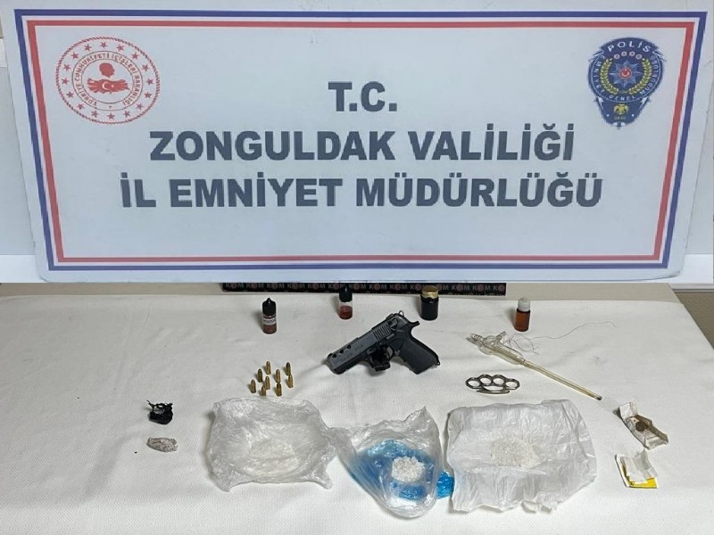 Yapılan operasyon neticesinde, ölümcül etkiye sahip 332 gram uyuşturucu madde, uyuşturucu madde kullanma aparatı, 1 adet ruhsatsız tabanca, 9 adet fişek ve 1 adet muşta ele geçirildi. H.O.D ve M.S isimli şüphelilere Uyuşturucu veya Uyarıcı Madde Ticareti Yapmak, Gasp ve 6136 Sayılı Kanuna Muhalefet suçlarından işlem yapılarak Zonguldak Cumhuriyet Başsavcılığına sevk edildi.