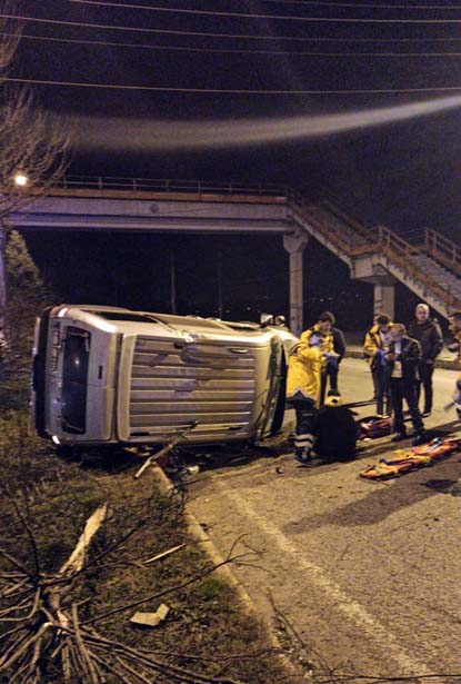 Edinilen bilgiye göre Zonguldak istikametinden Çaycuma istikametine seyir halinde olan Soner Ö. (38) hakimiyetindeki 67 TF 604 plakalı kamyonet Çaycuma ışıklı kavşağa doğru yaklaşırken üst geçidin altındaki bariyerlere çarparak takla attı. Sürücüsünün direksiyon hakimiyetini kaybedip kaza yapan aracı gören diğer sürücüler 112 acil servisi ve trafik polisini arayarak yardım istedi. Olay yerine gelen ambulans ile araçta bulunan şoför Soner Ö. ve yanında bulunan İrfan G.'ye (39) ilk müdahaleleri yapılarak Çaycuma Devlet Hastanesine kaldırıldı. Tedavi altına alınan yaralıların sağlık durumlarının iyi olduğunu belirtildi.