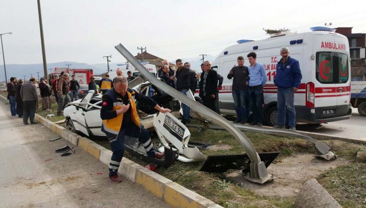 Refüjde bulunan demir direkleri deviren otomobilin içinde bulunan Emre Ç.,