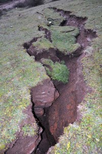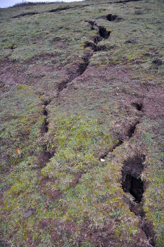 Çatlakların oluştuğu alana yakın bir yerde oturan Hüseyin Öztürk ise yaptığı açıklamasında, "Ufak bir yarık vardı yağışların ardından 8 metreye yakın çatlarlar oluşmuş. Toprağın bir bölümü tamamen diğerinden ayrılmış" sözleri ile konuştu.