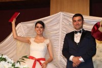 Gençlerin aileleri masaları tek tek dolaşarak misafirlerle yakından ilgilenirken, genç çiftin mutluluk ve heyecanları gözlerinden okunuyordu.