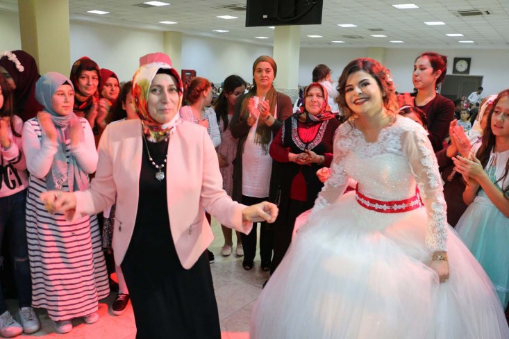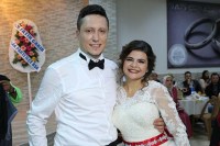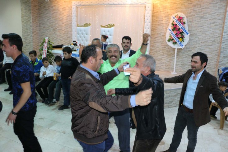 Takı merasimi ve pasta kesiminin ardından genç çift ve sevenleri gönüllerince eğlendi.