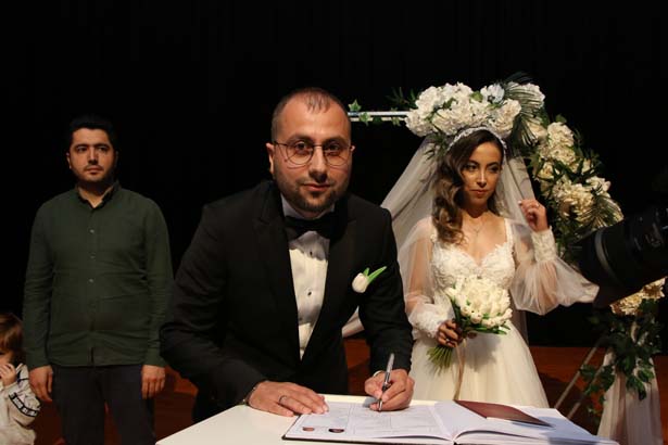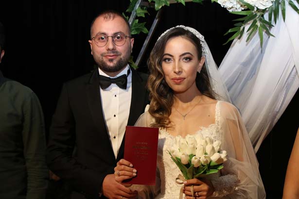 Hafta sonu Hüseyin Tatoğlu Kültür Merkezi’nde düzenlenen nikah töreninde genç çiftin mutlulukları gözlerinden okunuyordu.