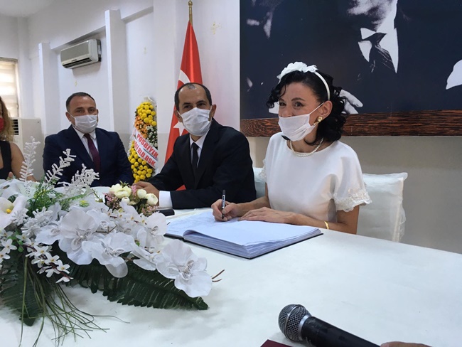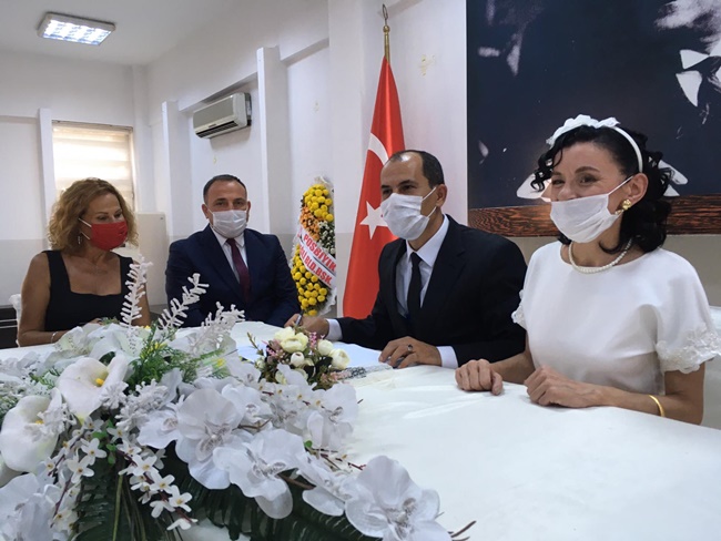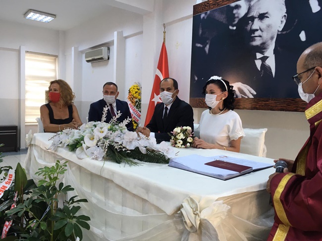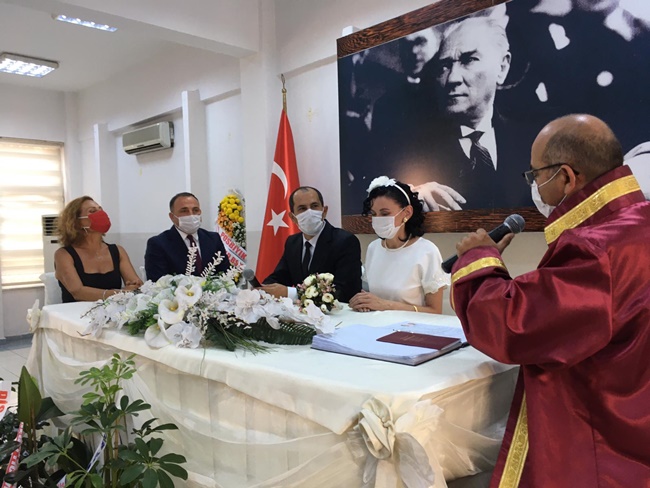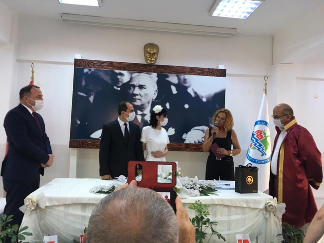 Çiftin nikah şahitliğini Kdz.Ereğli Belediye Başkanı Halil Posbıyık’ın eşi Neriman Posbıyık ve MHP Önceki Dönem İlçe Başkanı Talat Şeker yaptı. Neriman Posbıyık, çifte Atatürk resmi işlenmiş Türk Bayrağı, Kur’an-ı Kerim ve Nutuk’tan oluşan hediyeler vererek mutluluk dileklerini iletti. Neriman Posbıyık’ın isteğini kırmayan çift, nikah cüzdanını birlikte aldı. MHP Önceki Dönem İlçe Başkanı Talat Şeker de yaptığı konuşmayla çifte mutluluklar diledi.