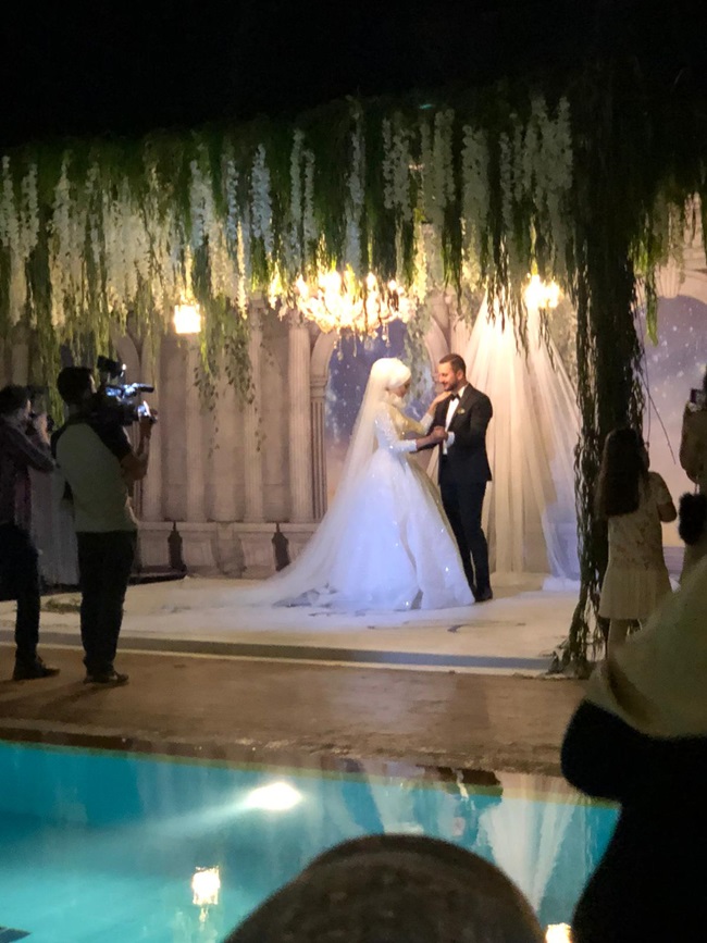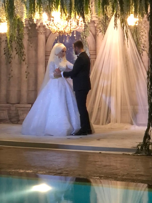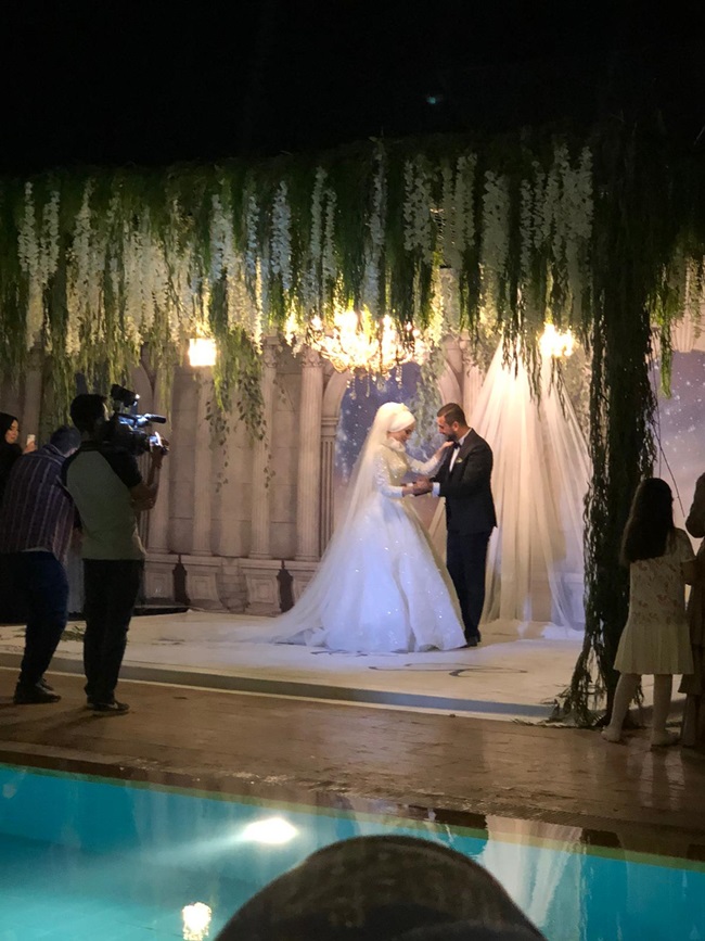 Büyük Anadolu Otel’de havuz başında gerçekleşen düğün töreninde Çapar ve Şentürk Aileleri genç çifti yalnız bırakmadı.