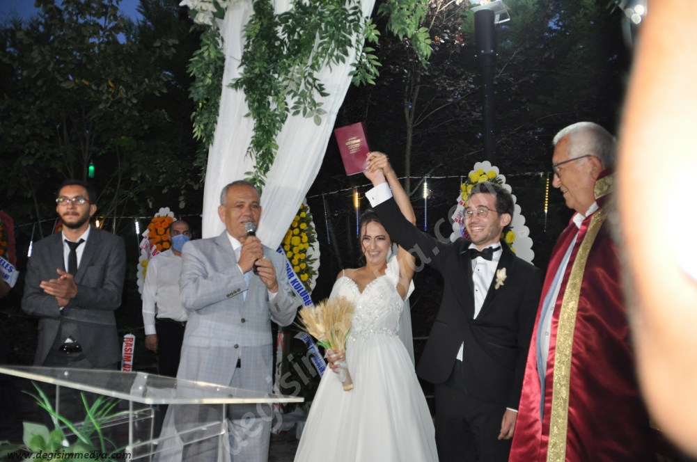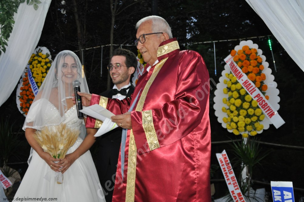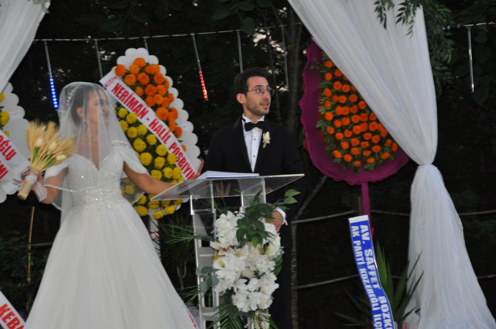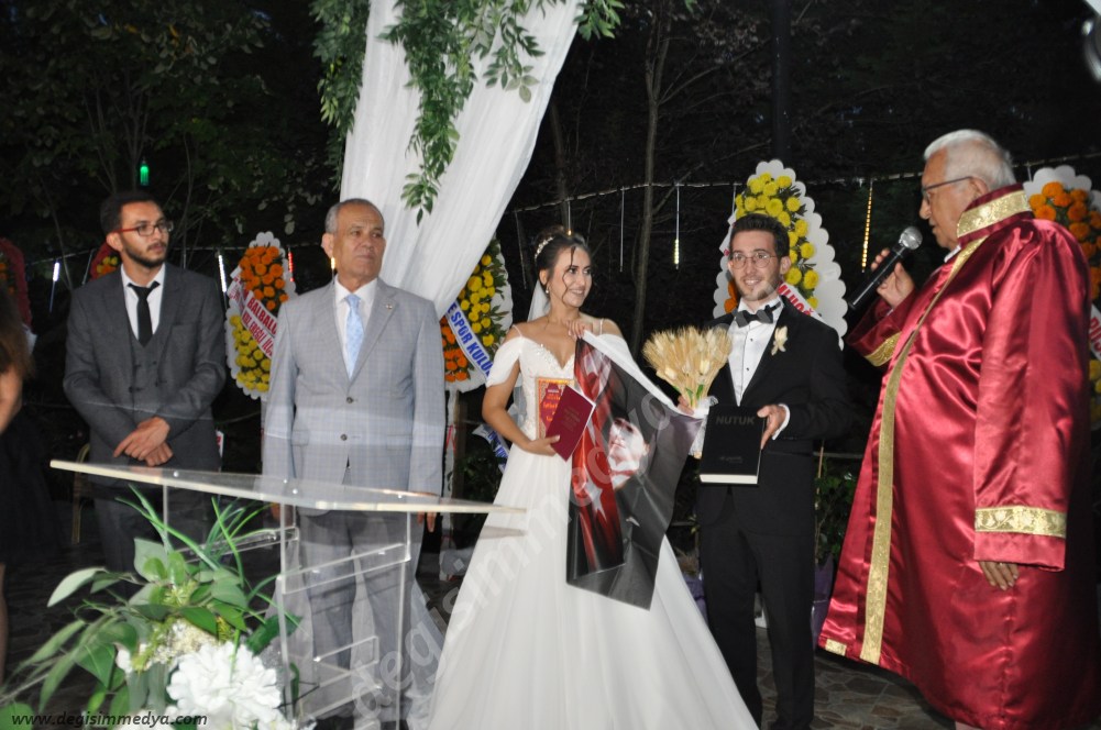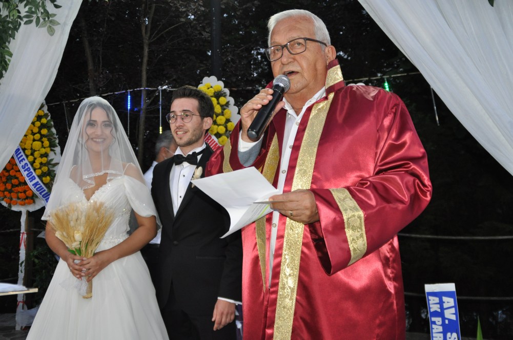 Düğün töreni öncesinde gerçekleştirilen nikah merasiminde, genç çiftin nikahını Karadeniz Ereğli Belediye Başkanı Halil Posbıyık gerçekleştirirken TGF Genel Başkanı Yılmaz Karaca da nikah şahitliği yaptı. Belediye Başkanı Halil Posbıyık, çifte Atatürklü Türk Bayrağı, Nutuk ve Kur’an-ı Kerim hediye etti.