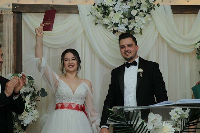 Kdz. Ereğli Sevgi Barış Dostluk Düğün Salonu Tesisleri'nde hafta sonu gerçekleştirilen nikah&düğün töreniyle dünya evine giren genç çift ömür boyu mutluluğa Evet dediler.