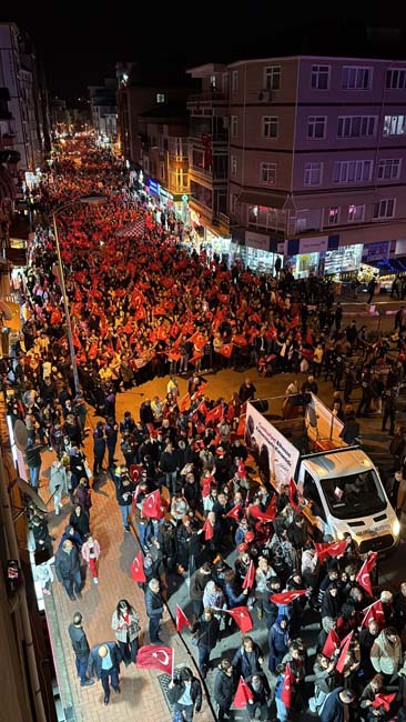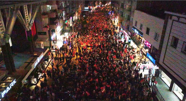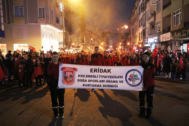 Atatürk ve Cumhuriyet sevgisini hep bir ağızdan haykıran, omuz omuza Türk Bayrağını dalgalandıran halk, sokakları insan seline döndürdü. Elde Türk Bayrağı, dilde Atatürk ve Cumhuriyet sevgisiyle kadınından çocuğa, gencinden yaşlısına hep birlikte marşlar ve şarkılar eşliğinde yürüyen Kdz. Ereğli halkı, cumhuriyetin kalesi olduğunu bir kez daha gösterdi.