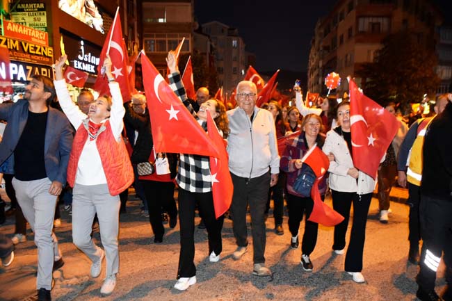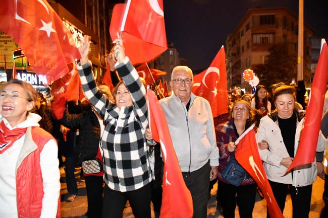 Elde Türk Bayrağı, dilde Atatürk ve Cumhuriyet sevgisiyle kadınından çocuğa, gencinden yaşlısına hep birlikte marşlar ve şarkılar eşliğinde yürüyen Kdz. Ereğli halkı, cumhuriyetin kalesi olduğunu bir kez daha gösterdi. Atatürk ve Cumhuriyet sevgisini hep bir ağızdan haykıran kalabalığa seslenen Belediye Başkanı Halil Posbıyık, “Muhteşemsin Aşkım Ereğli..Yaşasın Cumhuriyet, yaşasın Mustafa Kemal Atatürk” dedi.