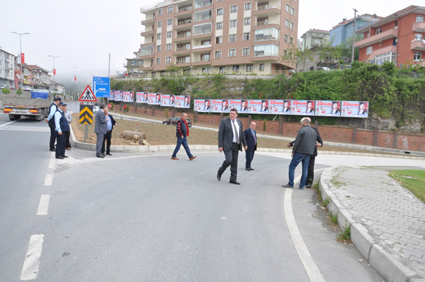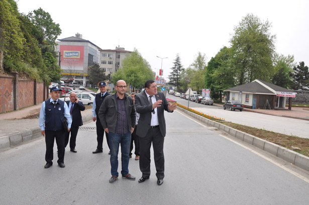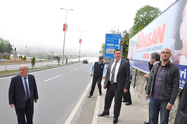 Alaplı Belediye Başkanı Nuri Tekin'in, bölünmüş karayolundan Alaplı şehir merkezine giriş yolu açılması için girişimlerde bulunması üzerine, Karayolları teknik ekipleri bölünmüş karayolu üzerinde ön inceleme yaptı.