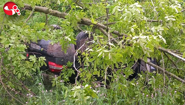 Şarampole savrulan araç ise çekici yardımıyla kaldırıldı.