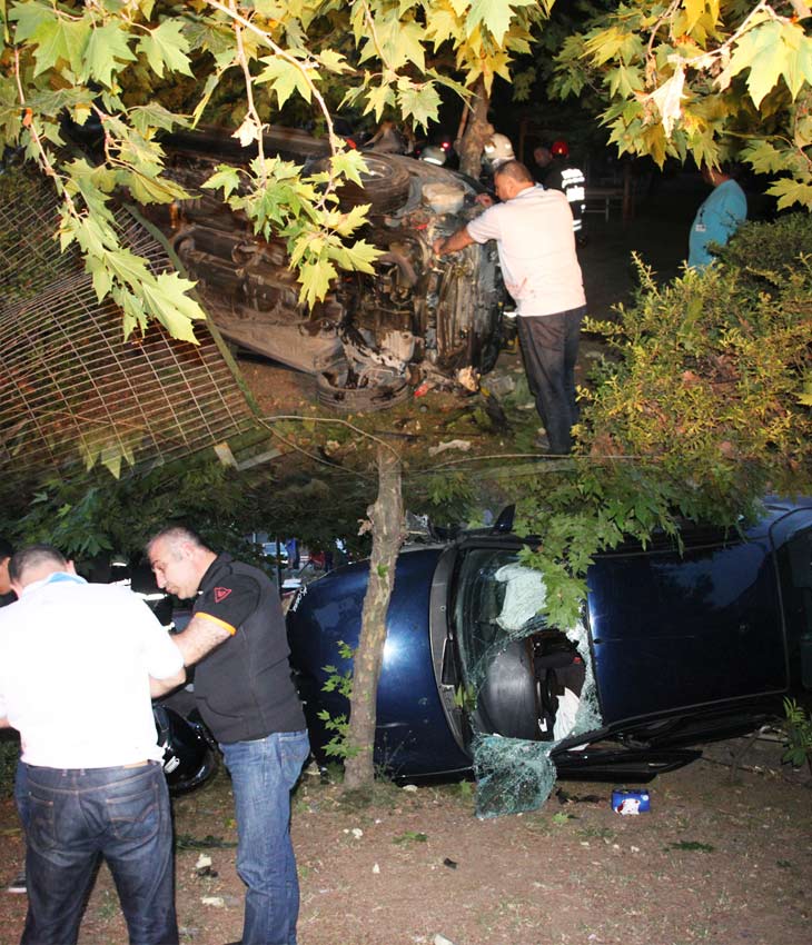 Kaza dün akşam saat 20.30 sularında Alaplı-Ereğli Karayolu'nda meydana geldi. Alınan bilgilere göre 67 TZ 939 plakalı otomobil sürücüsü Kerem F. (38) Erdemir plajı yan yolunu bölen bariyerlere çarptı. Bariyerler üzerinden tekrar yola düşen otomobil daha sonra Erdemir plajının korkuluk demirlerini yıkarak plaj tesislerine girdi. Kazada otomobil sürücüsü Kerem F. kanlar içerisinde araçtan çıktı. Yoldan geçen diğer araç sürücüleri ve vatandaşlar yaralı sürücü için sağlık ekiplerine haber verdi. Kısa sürede olay yerine gelen sağlık ekipleri yaralıya müdahale etmek istedi. Ancak yaralı sürücü tedaviyi kabul etmedi. Bu sırada sürücü Kerem F.'nin yanına gelen trafik polisleri, kazadan sonra mutlaka tedavi olması konusunda ikna etmeye çalıştı. Kazayı haber aldıktan sonra olay yerine gelen alan Kerem F.'nin eşi, anne ve babası sürücüyü ikna ederek ambulansa bindirdi.