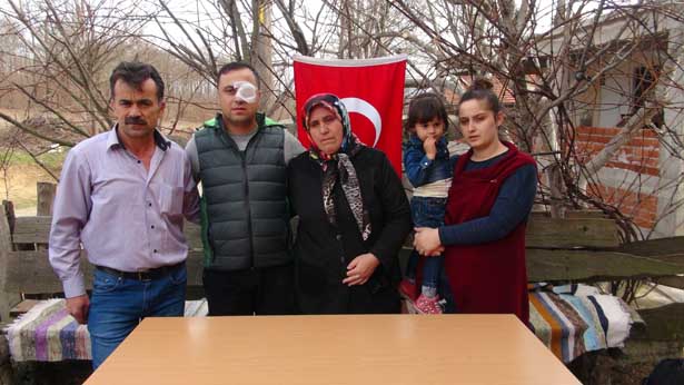 Gözüne bilye isabet eden Mehmetçik: Allah bize güç kuvvet verdiği için ayaktayız.