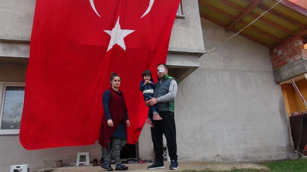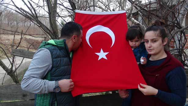ocağı Türk bayraklarıyla donatılanGaziErdemYurt, 4 yıllık eşiBetül(22), 2,5 yaşındaki kızıEbrar
