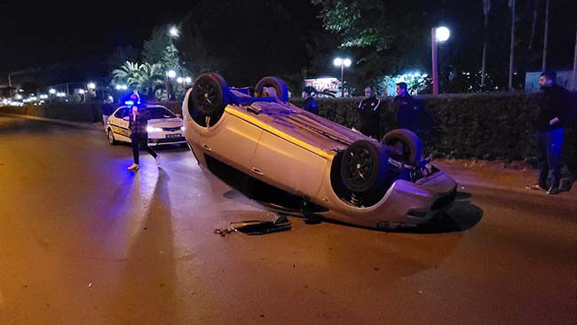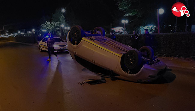 Zonguldak’ın Ereğli ilçesinde alkollü sürücünün kullandığı otomobil park halindeki otomobile çarparak takla attı.