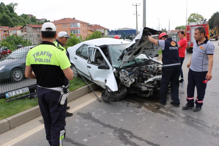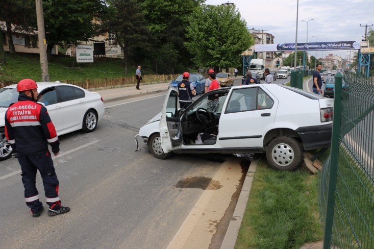 Kaza, Ereğli Devrek yolu Kavaklık mahallesinde meydana geldi. Alınan bilgilere göre Kepez istikametinden şehir merkezi istikametine giden 67 EY 300 plakalı otomobil sürücüsü Ahmet Ç. (68) bir anda direksiyon hakimiyetini kaybettiği otomobili ile önce kaldırma daha sonra da elektrik direğine çarptı. Kazada kontrolden çıkan otomobil yola savrularak orta refüje çıktıktan sonra durabildi. Kazayı görerek yardıma koşan vatandaşlar sağlık ekiplerine haber verdi. Olay yerinde gelen sağlık ekipleri, yaralı sürücü Ahmet Ç. ye ilk müdahaleyi yaptıktan sonra Ereğli Devlet hastanesine kaldırdı. Sürücünün sağlık durumunun iyi olduğu tedavisinin sürdüğü öğrenildi. Ereğli Belediyesi İtfaiye müdürlüğü ekiplerinin araçta yaptıkları çalışmanın ardından , kazada hurdaya dönen otomobil çekici ile olay yerinden kaldırılırken, çalışma sırasında yol trafiğe kapatıldı. Kazayı gören Mehmet Ateş "Oradan doğru geliyordu. Kaldırma sürttürdü arabayı. Toparlamaya çalıştı ama toparlayamadı. Direğe vurdu. Direğe vurunca araba geri attı kendini. Sürücü yaşlı amca vardı aracın içinde. 112 ekiplerini aradık. Ambulans geldi aldı" dedi. Savcılık kaza ile ilgili tahkikat başlattı.
