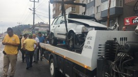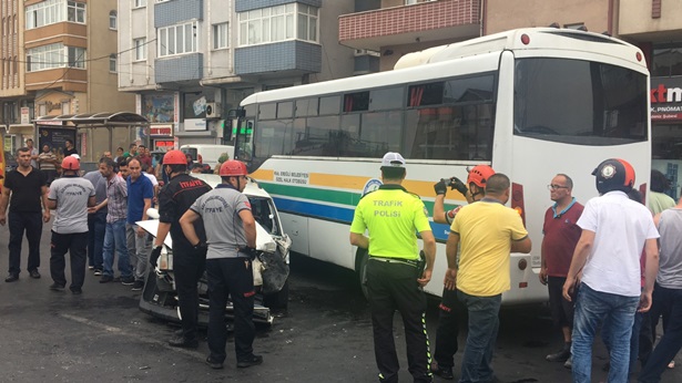 Zonguldak’ın Ereğli ilçesinde yağışlı hava nedeniyle direksiyon hâkimiyetini kaybeden sürücü halk otobüsüne çarparak durabildi. Kazada 3 kişi yaralanırken otomobil hurdaya döndü.