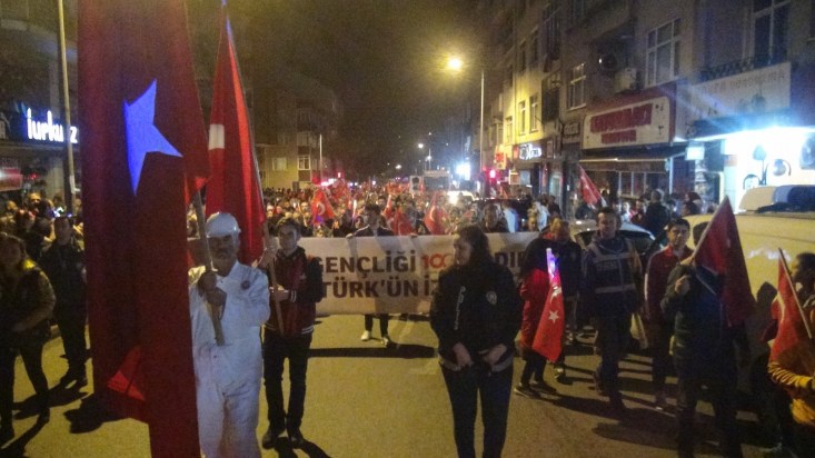 19 Mayıs Atatürk'ü Anma, Gençlik ve Spor Bayramının 100. yıl kutlama etkinlikleri çerçevesinde Bağlık karakolu önünden başlayan Fener Alayı Atatürk Anıtı önünde sona erdi. Ereğli Kaymakamı İsmail Çorumluoğlu, Ereğli Belediye Başkanı Halil Posbıyık, Karadeniz Bölge ve Garnizon Komutanı Tuğamiral Cemal Özden Yazıcıoğlu ve protokolün yanı sıra yaklaşık 15 bin Ereğlili vatandaşın katıldığı kortejde dev Türk Bayrağı açılırken, Atatürk posterleri açıldı. Fener alayına katılan vatandaşlar, dernekler ve sivil toplum kuruluşları slogan attı.