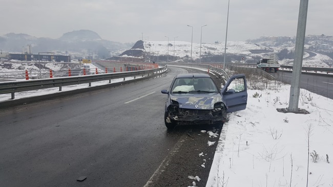 Kaza, Ören Mahallesi hastane köprüsü üzerinde meydana geldi. Alınan bilgilere göre, Ayşegül A. nın kullandığı 67 AAZ 543 plakalı otomobil, sürücüsünün direksiyon hâkimiyetini kaybetmesi üzerine aynı şeritte giden Ercan Ç. idaresindeki 34 BHH 447 plakalı otomobile çarptıktan sonra bariyerlere çarparak durabildi. Kazada sürücülerden Ayşegül A. yaralandı. Yaralı sürücü olay yerine gelen sağlık ekiplerinin ilk müdahalesinin ardından devlet hastanesine kaldırıldı. Yaralının sağlık durumunun iyi olduğu öğrenildi. Diğer otomobil sürücüsü Ercan Ç. İfadesi alınmak üzere polis merkezine götürüldü. Kazada hurdaya dönen otomobil çekici ile olay yerinden kaldırıldı. Kaza ile ilgili soruşturma başlatıldı.