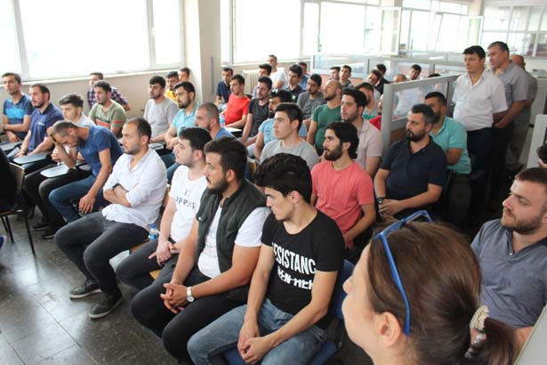 GMİS Genel Teşkilatlandırma ve Eğitim Sekreteri Tayfun Demir'in yeni madencilere GMİS Genel Merkez Yönetimini tanıtmasının ardından Genel Başkan Hakan Yeşil sendika hakkında ve çalışma hayatı konularında bilgiler verdi. Genç madencilere çeşitli uyarılarda ve tavsiyelerde bulundu.