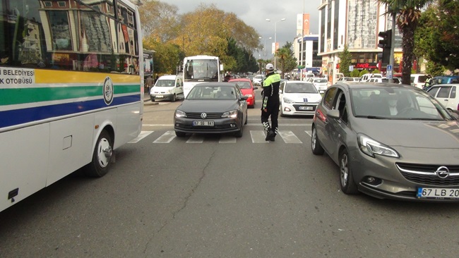 Zonguldak’ın Ereğli ilçesi Trafik Denetleme büro Amirliği ekiplerince PTT kavşağından Yaya önceliği uygulaması yapıldı. DRON destekli Uygulamada yaya geçidinde yayalara yol vermeyen 5 sürücüye ceza kesildi.