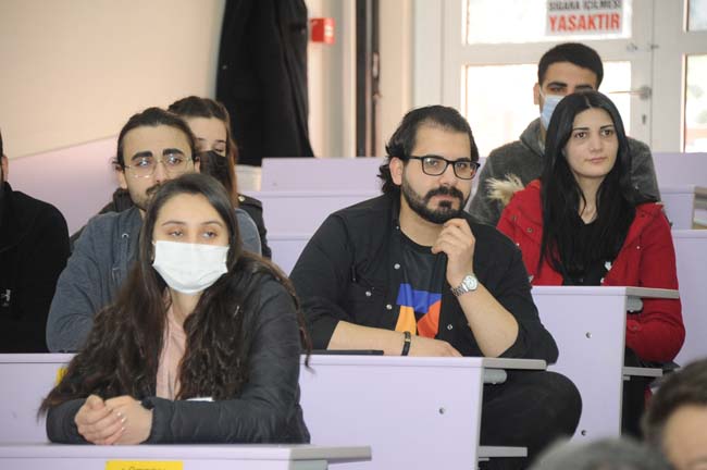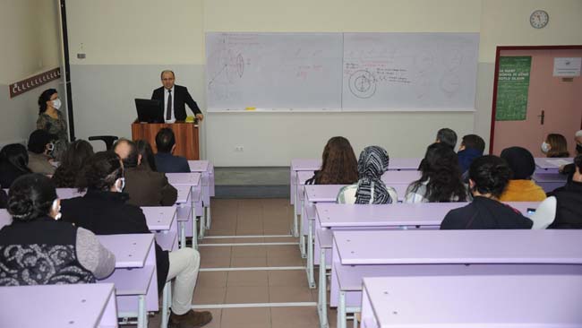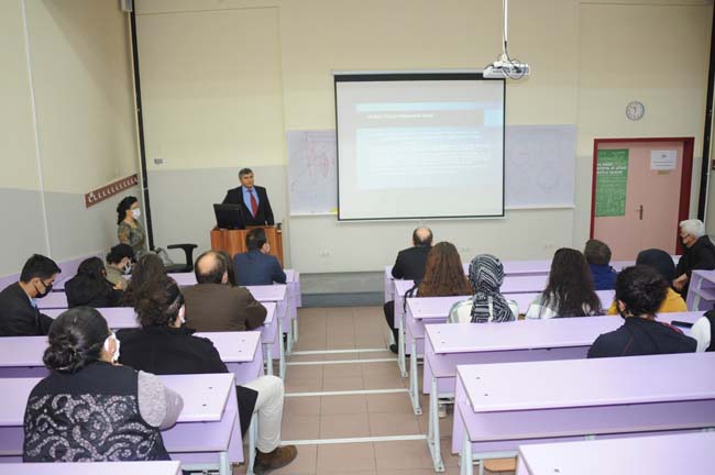 Matematik Bölüm Başkanı Prof. Dr. Yusuf Kaya'nın yaptığı “Her Yer Matematik” başlıklı konuşmanın ardından sırasıyla Doç. Dr. Mustafa Yıldız “Pi Sayısının Tarihi”, Prof. Dr. Fikret Gölgeleyen “Matematiğin Gelişim Süreçleri” ve Dr. Öğr. Üyesi Veli Akarsu “Pi Sayısının Alan ve Hacim Hesaplamalarındaki Yeri” ile ilgili sunum gerçekleştirdiler.