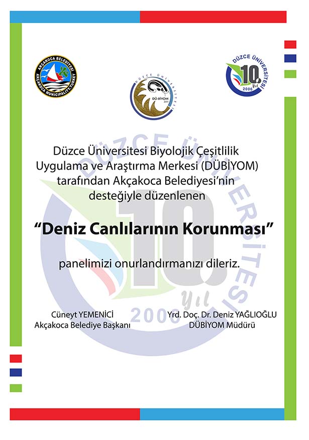 Akçakoca Belediyesi'nin desteğiyle, Düzce Üniversitesi Biyolojik Çeşitlilik Uygulama ve Araştırma Merkezi (DÜBİYOM) tarafından "Deniz Canlılarının Korunması" paneli düzenlenecek.