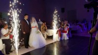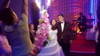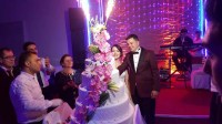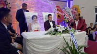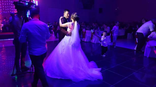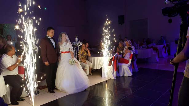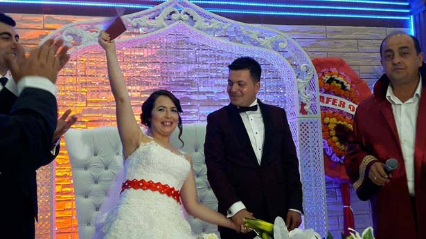 Genç çiftin dost ve akrabalarının katıldığı düğün programında gençler doyasıya eğlenirken, 'Biz Çok Mutluyuz' mesajını verdiler.