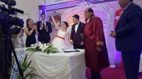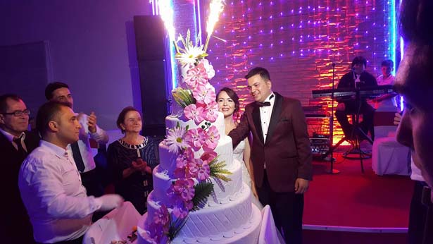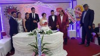 Genç çiftin oldukça heyecanlı olduğu düğün töreninde çiftin ve ailelerin heyecan ve mutlulukları da gözlerinden okunuyordu.