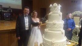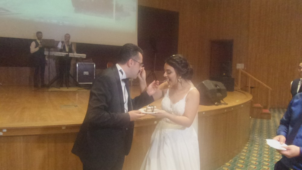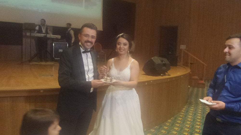 Daha sonra kestikleri düğün pastasından bir birlerine ikramda bulunarak yiyen çift için davetliler adeta ‘takı yarışı’na girdiler.