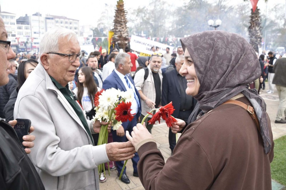 Belediye Başkanı Halil Posbıyık, "24 Kasım Öğretmenler Günü öncesi, eşim emekli öğretmen Neriman Posbıyık ve İlçe Kaymakamımız Fatih Yılmaz ile birlikte festivalimize katılan öğretmenlerimize karanfil vererek günlerini kutladık.