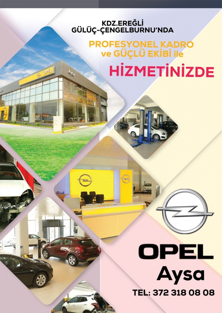 Ereğli' de uzun yıllarıdır otomotiv sektöründe Ereğli ve bölge halkına hizmet veren AYSA OTOMOTİV sahibi Muhammet Aydın, OPEL AYSA ile hizmet ağını genişletti. Yenilenen yüzü, Profesyonel kadrosu ve güçlü ekibi ile OPEL AYSA hizmete başlarken, OPEL AYSA Yönetim kurulu başkanı Muhammet Aydın, OPEL AYSA'nın Ereğli ve bölge halkına hayırlı olmasını diledi. Aydın açıklamasında "Yıllardır Otomotiv sektöründe halkımızın hizmetindeydik. Bugün itibari ile de otomotiv sektörünün dev isimlerinden OPEL ile yolumuza devam ediyoruz. Satış, bakım, servis, yol hizmetleri başta olmak üzere Profesyonel kadrosu ve güçlü ekibi ile OPEL AYSA sizlere hizmet verecek. Amacımız kaliteyi sizlere aktarmak. OPEL AYSA artık Ereğli ve bölge halkımızın hizmetinde" dedi.