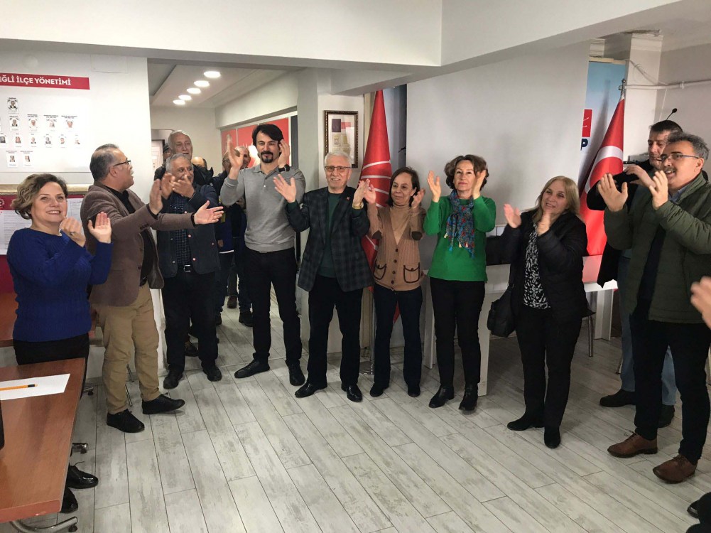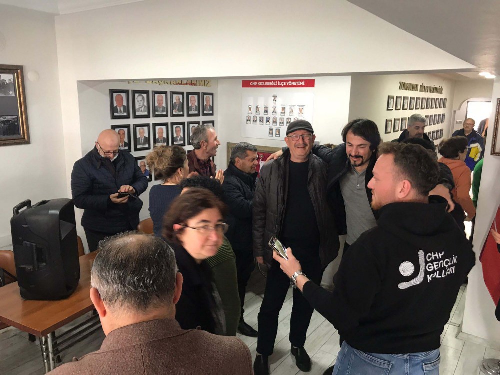CHP Kdz.Ereğli İlçe Başkanlığında kapıda karşılanan milletvekili adayı Ertuğrul, partililer tarafından alkışlarla karşılanırlen, parti binasına Alaplı Belediye Başkanı Nuri Tekin ve Kandilli Belediye Başkanı Mustafa Aydın’da gelerek milletvekili adayı Ertuğrul’a, “hayırlı, olsun, başarılar, bu seçimi de hayırlısıyla atlatacağız ” dileklerini ilettiler.